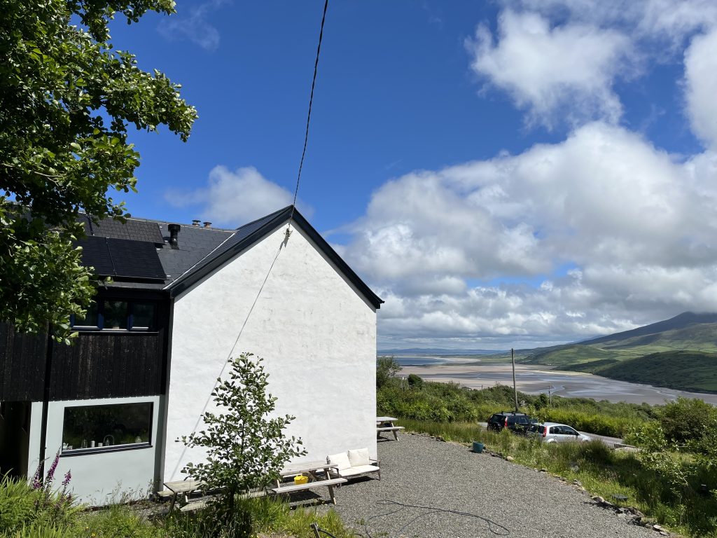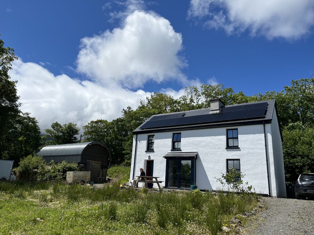 Ik werk nu vanuit ons huis in het dorp Cloghane aan Brandon Bay, in het zuidwesten van Ierland. Het ligt tussen de bergen en de zee in. ‘Where the mountains meet the sea’, zeggen ze hier ook wel. Vanuit huis kijk ik uit over de baai, die met vloed vol is en met eb leeg. Het uitzicht is altijd anders en het is nooit saai. We hebben een oude boerderij met dikke stenen muren gekocht op een online veiling. Het was al een tijd verlaten en er moest veel gebeuren. In totaal hebben we twee jaar verbouwd: een jaar gestript en een jaar opgebouwd. Nu is het een tophuis met fraaie aanbouw. Duurzaam gebouwd en goed geïsoleerd met schapenwol en natuurlijke materialen, inclusief een warmtepomp en zonnepanelen.