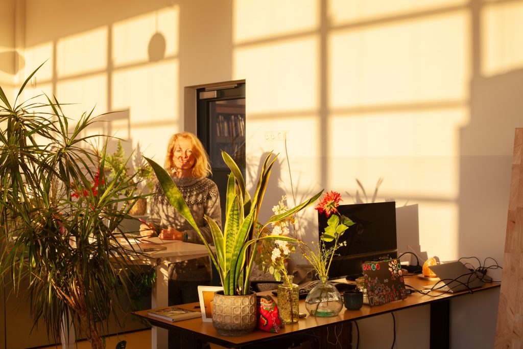 Hiervoor heb ik even vanuit huis gewerkt. Ik heb daar echter geen aparte werkkamer en de bergen was op de achtergrond bij mijn video-belafspraken waren vaak te hoog. Verder zijn mijn buren heel aardig, maar ze kletsen veel met elkaar – op straat onder mijn raam. Ik ga dus graag naar kantoor, ook als het maar een paar uurtjes kan. Het grappige is dat ik er niet op zoek was, maar dit kreeg aangeboden. Het was zo’n mooie, fijne plek, dat ik niet kon weigeren.