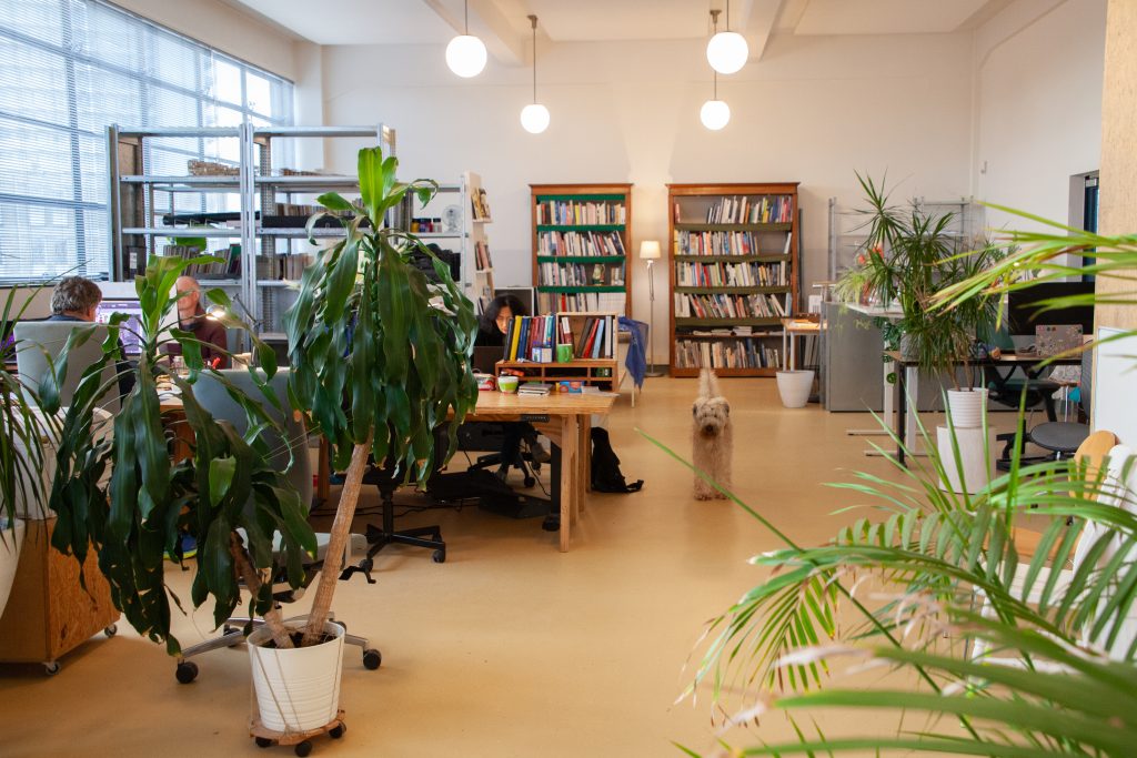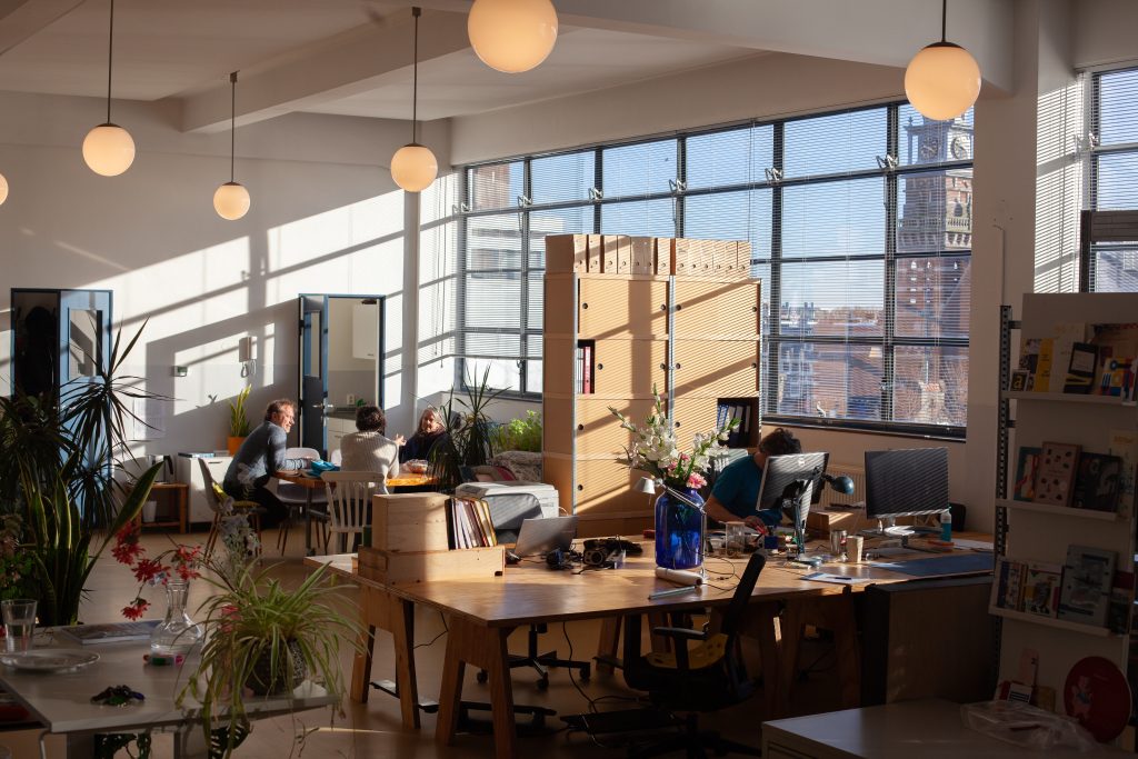 Ik deel een grote ruimte met andere creatieve ondernemers, zoals filmmakers, grafisch ontwerpers, architecten, een communicatieadviseur en stedenbouwkundige. Sinds kort werkt mijn partner Sjoerd-Jeroen hier ook. Dat is best apart, maar vooral gezellig. Hij is geen ondernemer, maar docent en wetenschapper en hoeft momenteel niet vaak op zijn werkplek in Groningen te zijn.