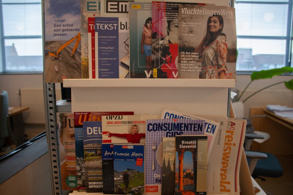 Ons lokaal is rechthoekig, met ramen aan een zijde, acht ronde plafondlampen, bureaus verspreid door de ruimte en veel planten. We kijken uit op een grote kerk en vanuit de gang op een kleine, verstopte begraafplaats uit 1780, waar onder andere de schrijfsters Betje Wolf en Aagje Deken begraven liggen. Verder hebben we een klein keukentje en een wc. We hebben een hok gebouwd voor belafspraken en interviews. Eventueel kan ik daarvoor ook een ruimte beneden gebruiken. De mensen van de andere bedrijven in dit gebouw zie ik in het voorbijgaan en zou ik nog willen leren kennen. Beneden zit portier Henk, die het fort bewaakt.