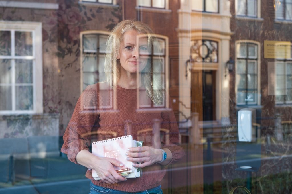 Met Sjoerd-Jeroen heb ik de dagen dat we voor de kinderen zorgen verdeeld. Op mijn dag sta ik op met de kinderen en breng de jongste naar school. Als het zijn dag is, ga ik eerst even rennen langs het strand. Of ik begin eerder met werken, als ik veel werk moet afronden. Op de fiets luister ik meestal een stukje van een podcast, vooral over mijn vak, ondernemen of nieuws. Sowieso maak ik een omweggetje langs het strand om even de zee te zien. Die ziet er altijd anders uit. In de winter zijn de strandtenten weg en is er meer ruimte, maar ik vind het strand het hele jaar door geweldig.