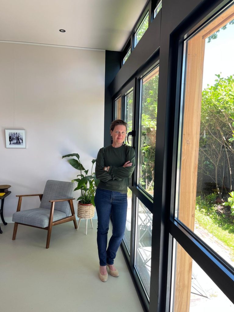 Af en toe spreek ik af bij klanten, bijvoorbeeld voor overleg. Voorheen huurde ik samen met Hattum een etage in het advocatenkantoor van mijn man Frank. Het is een voormalig bankgebouw uit de jaren vijftig met drie etages, met op iedere etage drie kamers. Hattum en ik hadden twee kamers op de zolderverdieping. Ik kreeg behoefte aan meer rust op mijn werkplek. Het is gezellig om de hele dag mensen tegen te komen, maar dan krijg ik minder gedaan. Ik werk nu ongeveer een maand in een schrijfhuisje in onze achtertuin.