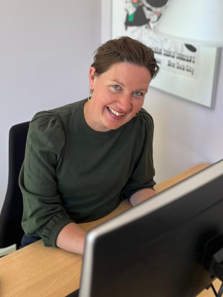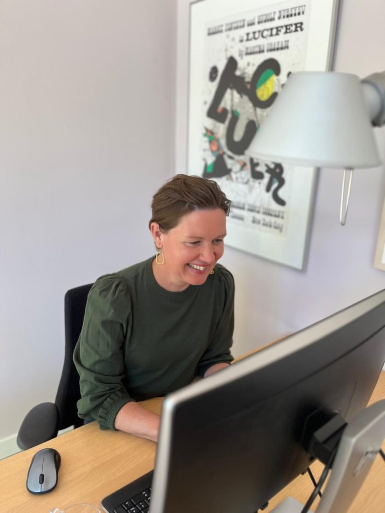In de werkruimte heb ik een sta-zitbureau. Schrijven doe ik meestal zittend, maar hoe makkelijker het werk, hoe eerder ik ga staan. Ik heb altijd muziek aan: klassiek of piano voor serieus schrijven, en jazz of koffietent-achtige muziek voor redigeren en mailen. Ik heb specifieke albums op Spotify bij het schrijven en mijn brein snapt dan dat er gewerkt gaat worden. Op mijn bureau staan een bureaulamp, thermoskan met thee, kaarsenhouder en vaak ook een scanner voor internetbankieren. Het bureau is opgeruimd en niet groot, maar er is genoeg ruimte voor boekjes, schriftjes en stiftjes.